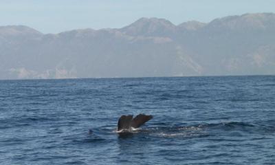 Whale watching in Kaikura. Weg ist er.